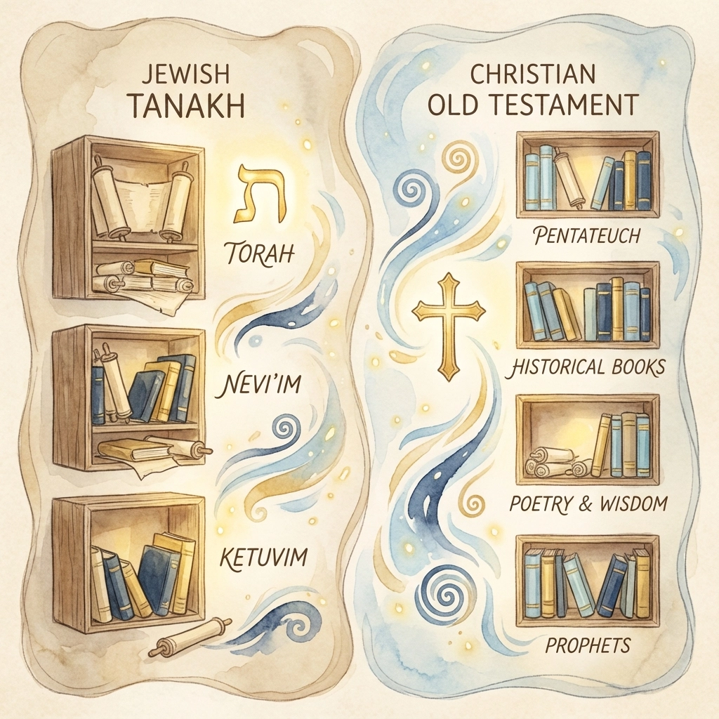 This isn't just academic shuffling: it actually affects how each tradition reads and interprets these texts. Jews encounter the Torah first and foremost, then see the Prophets and Writings as commentary and expansion. Christians move through a more historical timeline, seeing progression from law to history to wisdom to prophecy.
